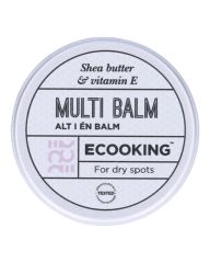 Ecooking Multibalm Ecooking's Multibalm is gemaakt van arganolie en olijfolie. Het heeft een breed scala aan eigenschappen zoals het verlichten van jeuk, het verzorgen van nagelriemen en het hydrateren van droge handen, ellebogen en voeten.