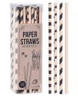 Pak van 100 stuks. milieuvriendelijke rietjes van ongebleekt papier met een zwart patroon.