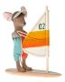 Maileg grote broer muis op fijne surfplank. Gekleed in fijne badkleding en met elastieken voor de voeten.