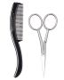 Deze snorset is een set met alles wat je nodig hebt om een snor of andere baard recht te houden.